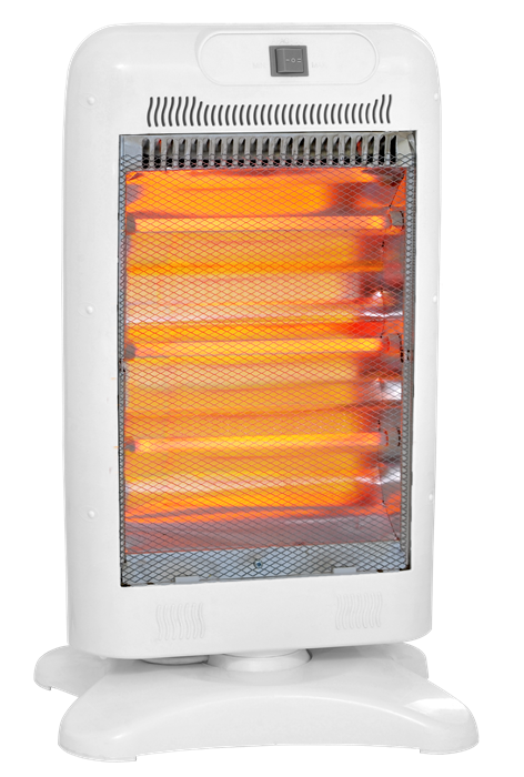 Estufa halogena centrex Equipada con tres tubos de cuarzo, Interruptor con dos posiciones de potencia , Frente con manto de metal y Corte de corriente por caída.