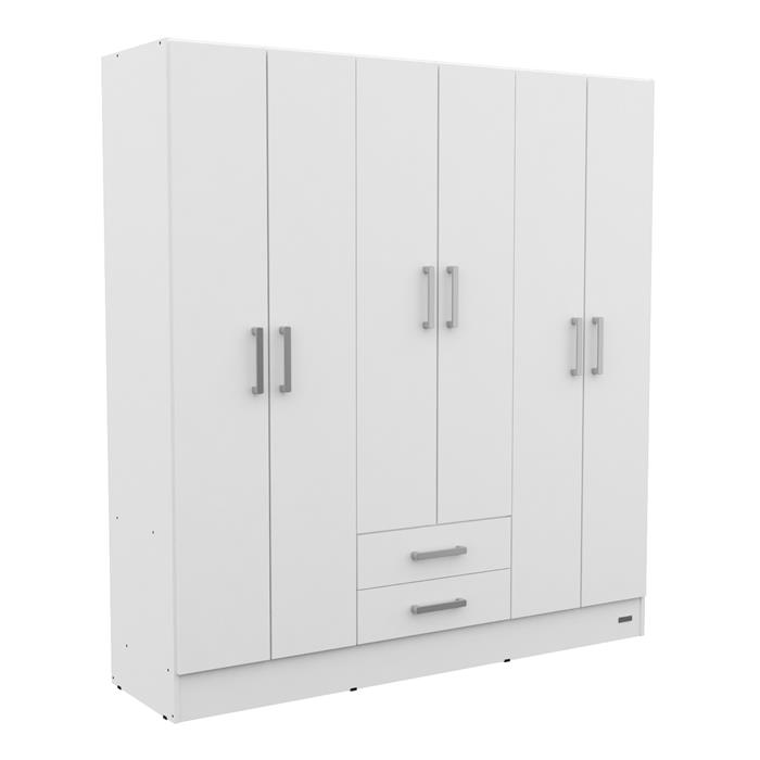 PLACARD 6 PUERTAS 2 CAJONES MELAMINA MOSCONI DAKAR 56491 COLOR BLANCO